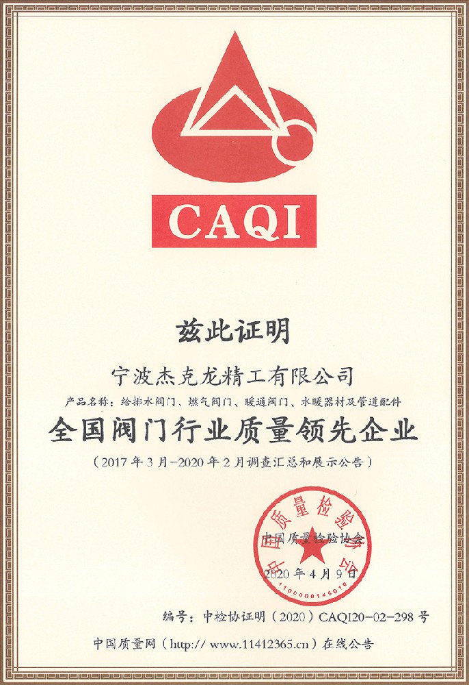 全國閥門行業(yè)質(zhì)量領(lǐng)先企業(yè)